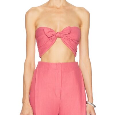 The TOVE Awa Top in dusty cherry features a breezy, cropped linen‑cotton silhouette—pair it with the Santu Trouser and Elluminize lashes for a softly radiant, summer chic ensemble.